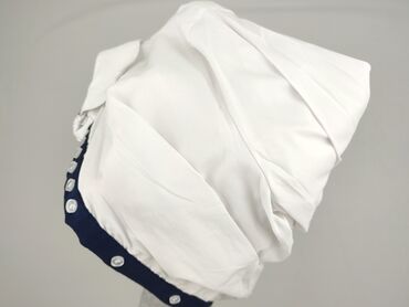 Biała koszula damska z krótkim rękawem - Materiał: lekka, przewiewna tkanina przypominająca len/bawełnę - Krój: luźny, lekko pudełkowy; obniżona linia ramion; zaokrąglony dół - Zapięcie: pełna lis...