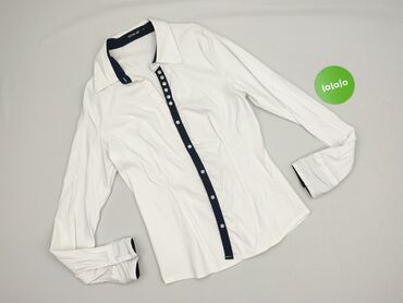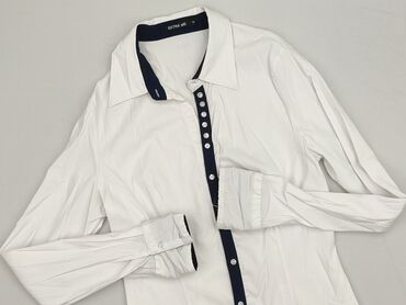 Biała koszula damska z długim rękawem - Krój: klasyczna koszula zapinana na guziki, kołnierzyk, mankiety na guziki, delikatnie zaokrąglony dół. - Rozmiar z metki: XL. - Skład materiału: 95% polies...Stan: