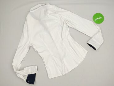 Biała koszula damska z długim rękawem - Krój: klasyczna koszula zapinana na guziki, kołnierzyk, mankiety na guziki, delikatnie zaokrąglony dół. - Rozmiar z metki: XL. - Skład materiału: 95% polies...