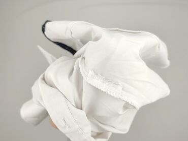 Biała koszula damska z długim rękawem i kołnierzykiem. - Materiał: miękka, przewiewna tkanina o drobnej, gofrowanej/teksturalnej fakturze. - Fason: luźny, wydłużony krój z zaokrąglonym dołem (tun...
