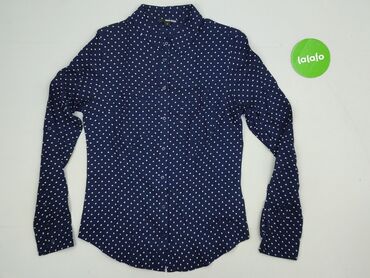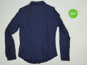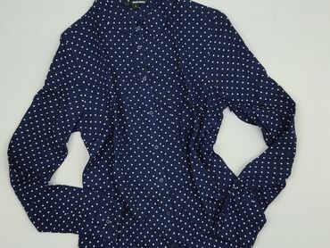 Koszula damska STYLEWE, rozmiar S. - Kolor: jasny błękit z dużymi, czarnymi grochami (print po całości). - Fason: lekko rozkloszowany dół z wydłużonym tyłem, po bokach głębsze rozcięcia. Klasyczny...