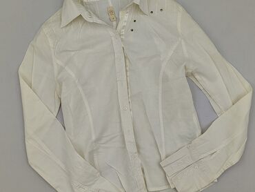 Biała koszula damska HOUSE Basic - Rozmiar: S (z metki) - Krój: klasyczny z kołnierzykiem, zapinana na guziki - Rękawy długie z mankietami na guziki; możliwość podpięcia (pasek z guzikiem na rękaw...