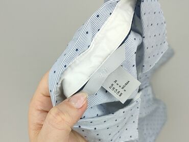 Koszula damska H&M - Krój: klasyczna koszula z kołnierzykiem, długi rękaw - Zapięcie: pełny rząd guzików z przodu; mankiety na guzik - Wzór: cienkie pionowe paski w kolorze niebieskim i białym - R...