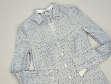 Biała koszula damska H&M w drobne czarne kropki. - Marka: H&M - Rozmiar z metki: EUR 32 (US 2, CA 2, CN 155/76A, MX 2) - Fason: zapinana na guziki, klasyczny kołnierzyk - Rękaw: długi, mankiety na...