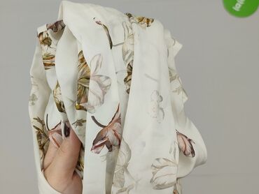 Bluzka damska w kwiaty, rozmiar M - Kolor: biel z wielobarwnym, kwiatowym nadrukiem (odcienie różu, żółci, beżu i zieleni) - Fason: koszulowy, zapinany na guziki z przodu - Kołnierzyk klasyczny, m...