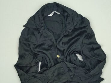 Koszula damska Zara Basic Collection - Kolor: czarny - Fason: klasyczna koszula z kołnierzykiem, długi rękaw z mankietami na guzik - Ozdoby: aplikacje perełek (różne rozmiary) z przodu na ramionac...