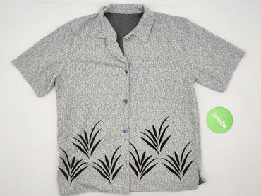 Koszula damska z krótkim rękawem – kwiatowy wzór - Krój: luźny, koszulowy, z kołnierzykiem i zapięciem na guziki z przodu - Rękaw: krótki, szeroki - Rozmiar: L (metka widoczna na zdjęciu) - Wzór/k...