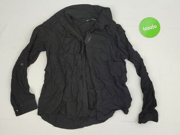 Damska koszula Sinsay, rozmiar L - Kolor: czarny, matowy - Fason: klasyczna koszula z kołnierzykiem, zaokrąglony dół - Zapięcie: częściowo na guziki z przodu (plisa do połowy) - Rękawy długie, man...