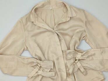 Koszula damska Roza, rozmiar S - Krój: taliowany, zapinana na guziki z przodu, klasyczny kołnierzyk, długie rękawy z mankietami na guzik - Kolor: beżowo-złoty, lekko połyskujący - Tkanina: 65% baw...