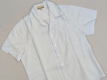Koszula damska z krótkim rękawem, stójką i zapięciem półplastron (połowa długości) na guziki. - Kolor: jasny błękit - Rozmiar: M (metka: 170/88A) - Fason: prosty, lekko wydłużony tył, stójka - Ręk...