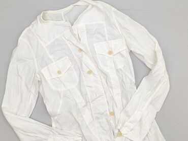 Biała damska koszula Sinegy, rozmiar S - Krój: klasyczny, zapinana na guziki z przodu - Kołnierzyk stójka - Długi rękaw, mankiety na guziki - Dwie naszywane kieszenie na piersi - Delikatnie zaokrą...