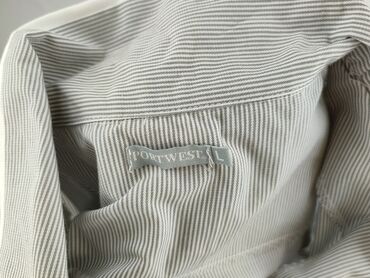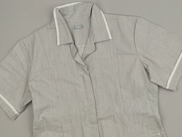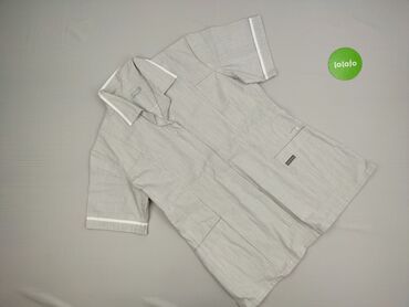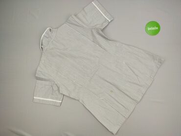 Koszula w paski – luźny krój, krótki rękaw - Wzór: pionowe paski w odcieniach bieli i szarości - Fason: oversize/luźny, lekko wydłużony tył z zaokrąglonym dołem - Rękaw: krótki, swobodny - Zapięci...