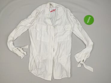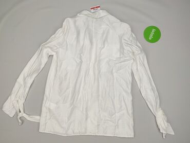 Biała koszula damska z długim rękawem i kołnierzykiem, rozmiar 36 (etikieta: WOMEN 36). - Materiał: cienka, lekka tkanina o delikatnej fakturze. - Krój: luźniejszy, zaokrąglony dół. - Zapięcie: wią...