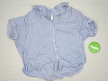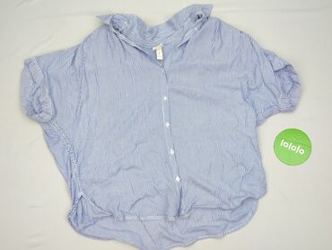 Koszula damska H&M L.O.G.G. - Krój: klasyczna koszula z krótkim rękawem - Zapięcie: na guziki z przodu - Kołnierzyk: koszulowy - Wzór: cienkie pionowe paski w odcieniach niebieskiego na białym tle...