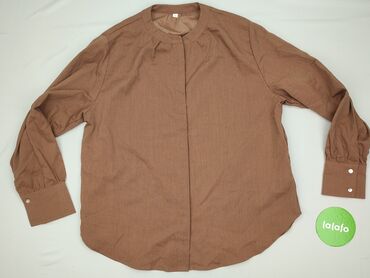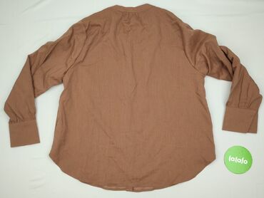Koszula damska w kolorze brązowym/musztardowym z długim rękawem. Posiada klasyczny kołnierzyk i zapięcie na guziki z przodu. Wykonana z materiału o widocznej fakturze, co sugeruje bawełnę lub podob...