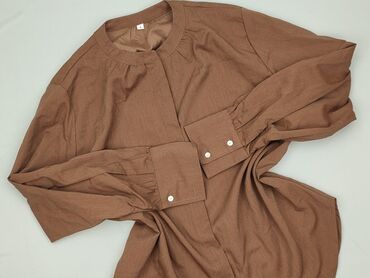 Koszula oversize aDDa, rozmiar L - Kolor: beżowy/camel - Fason: oversize, proste bardzo szerokie rękawy 3/4, dół zaokrąglony - Zapięcie: na napy (metalowe zatrzaski) z przodu - Kołnierzyk klasyczn...