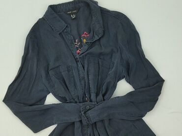Koszula damska New Look - Fason: koszula z kołnierzykiem, zapięcie częściowe na guziki (half placket), dłuższy, zaokrąglony dół. - Wzór: pionowe paski – czerwone z cienkimi granatowymi na białym t...