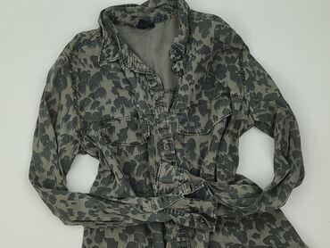 Koszula damska AMISU - Rozmiar: XS (EU/US/CA/CN) - Kolor: khaki/oliwkowy - Fason: dopasowany, wydłużony (tuniko‑koszula) - Zapięcie: na guziki z przodu - Kieszenie: dwie naszywane na piersi z patk...Stan: