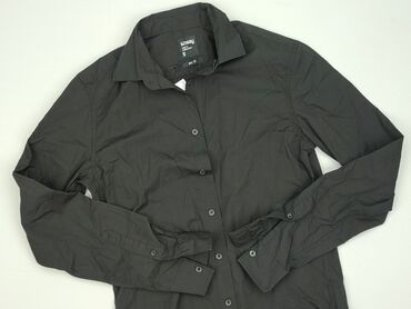 Koszula damska Sinsay - Kolor: czarny - Rozmiar z metki: S - Fason: zapinana na guziki, długi rękaw, kołnierzyk - Detale: lekkie marszczenie przy zapięciu z przodu, mankiety na guzik, zaokrąglony ...