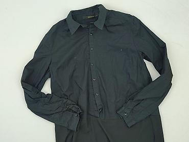 Czarna koszula damska RESERVED - Rozmiar: 38 (metka widoczna na zdjęciu) - Materiał: 100% wiskoza - Fason: zapinana na guziki z przodu, zaokrąglony dół - Rękawy długie z mankietami zapinanymi na g...