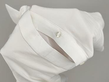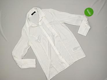 Biała koszula damska z długim rękawem - Krój: klasyczna koszula zapinana na guziki, kołnierzyk, mankiety na guziki, delikatnie zaokrąglony dół. - Rozmiar z metki: XL. - Skład materiału: 95% polies...