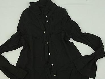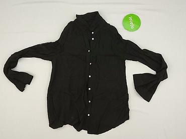 Czarna koszula damska z kołnierzykiem i guziczkami na całej długości. - Marka: Fée (etykieta na karku) - Fason luźny, lekko wydłużony dół - Rękawy 3/4 z możliwością podpięcia (pasek z guzikiem) - ...