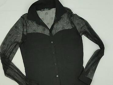 Elegancka, wieczorowa koszula idealna do spodni z wysokim stanem lub spódnic. Świetnie łączy klasykę z nowoczesnym wykończeniem z transparentnej siateczki. Dla kobiet. Używana.