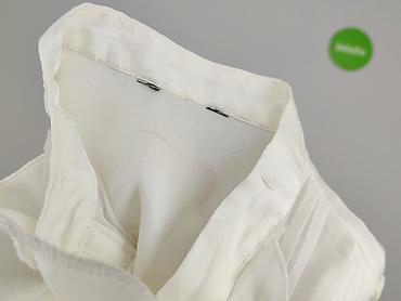 Biała koszula damska z krótkim rękawem - Krój dopasowany, zapinana z przodu na rząd guzików - Delikatny kołnierzyk stójka - Kryty zamek przy karku ułatwiający zakładanie - Materiał: 95% poliester,...