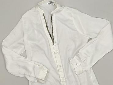 Damska koszula biała z długim rękawem - Klasyczny kołnierzyk, zapięcie na rząd drobnych guzików z przodu - Asymetryczne rozcięcia po bokach - Dekoracyjne, duże metaliczne guziki po bokach oraz na ...Stan: