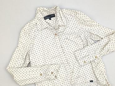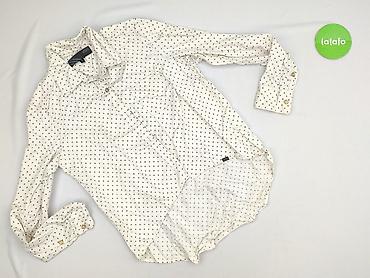 Damska koszula w grochy - Kolor: czarny w białe kropki - Krój: zapinana na guziki, kołnierzyk klasyczny, lekko wydłużony dół; rękawy z mankietami zapinanymi na guzik - Rozmiar z metki: L/XL - Mate...Stan:
