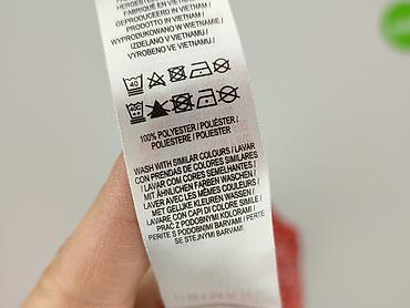 - Metki pielęgnacyjne: pranie w 40°C, prasowanie w niskiej temp., prać z podobnymi kolorami
