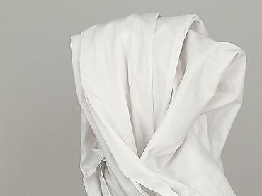 - Materiał: cienka, gładka tkanina bawełniana (wyczuwalna domieszka syntetyku; metka pielęgnacyjna z instrukcją „KEEP AWAY FROM FIRE”)