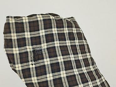- Wzór: krata w odcieniach brązu, granatu i ecru.