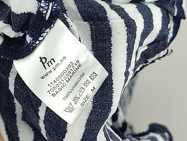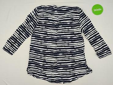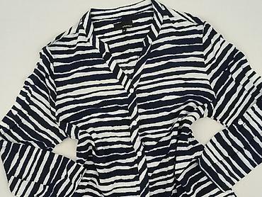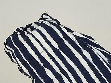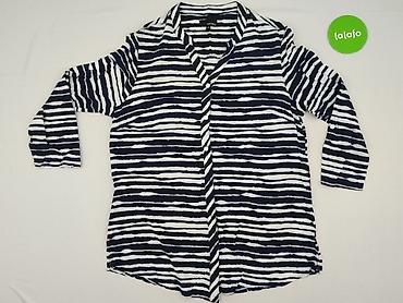 Koszula damska Lustrin, rozmiar M - Wzór: granatowo-białe paski (pionowe i ukośne), efekt lekkiego marszczenia/crinkle - Fason: dłuższa koszula zapinana na guziki, zaokrąglony dół, długi rękaw z m...
