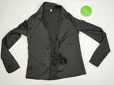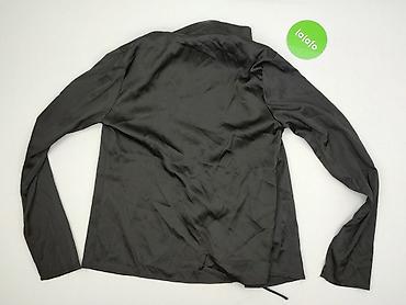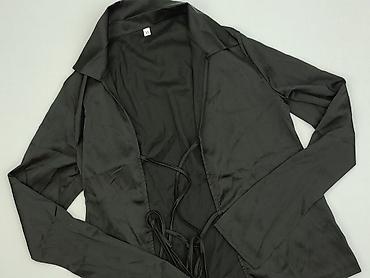 Czarna bluzka/koszula damska z długim rękawem, rozmiar M. Lekko połyskujący materiał, wiązanie z przodu na cienkie troczki, kołnierzyk z rewersami, prosty dół.