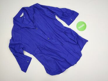 Koszula damska w paski - Krój: klasyczna koszula zapinana na guziki z kołnierzykiem, długie rękawy z mankietami na guziki - Wzór: drobne pionowe paski w kolorze błękitno-białym - Rozmiar z metki: ...