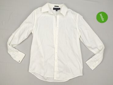 Biała koszula damska z długim rękawem - Krój: klasyczna koszula zapinana na guziki, kołnierzyk, mankiety na guziki, delikatnie zaokrąglony dół. - Rozmiar z metki: XL. - Skład materiału: 95% polies...