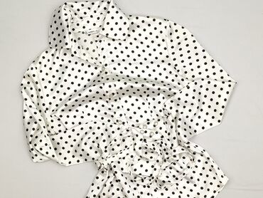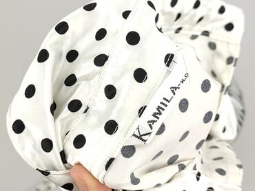 Biała koszula damska marki Camaieu, zdobiona drobnymi czarnymi kropkami. Koszula posiada klasyczny kołnierzyk i zapięcie na guziki z przodu. Długie rękawy zakończone są mankietami zapinanymi na jed...