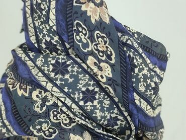 - Wzór i kolor: pionowe pasy z motywami kwiatowymi i geometrycznymi; odcienie granatu, niebieskiego, kremu i beżu