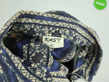 - Krój: klasyczna koszula z kołnierzykiem, długie rękawy zapinane na guziki przy mankietach, zapięcie na guziki z przodu