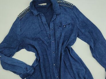 Jeansowa koszula damska z długim rękawem. Zapinana na guziki, z dwiema kieszeniami na piersiach. Ozdobne ćwieki na ramionach i górnej części koszuli dodają jej charakteru. Koszula jest w bardzo dob...
