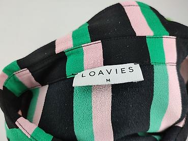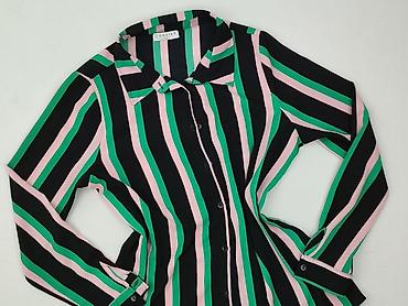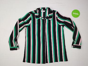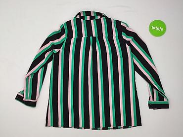 Koszula damska w paski, rozmiar M - Fason: klasyczna koszula zapinana na guziki, długi rękaw z mankietami, kołnierzyk, zaokrąglony dół. - Wzór/kolory: szerokie pionowe pasy w odcieniach czerni, br...