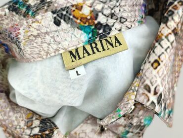 - Detale: zaokrąglony dół, klasyczne przeszycia, metka wewnętrzna z nazwą MARINA i oznaczeniem rozmiaru L