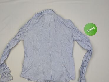 Koszula damska w paski - Krój: klasyczna koszula zapinana na guziki z kołnierzykiem, długie rękawy z mankietami na guziki - Wzór: drobne pionowe paski w kolorze błękitno-białym - Rozmiar z metki: ...