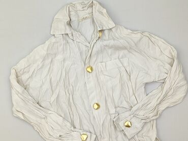 Bluzka/koszula damska z wiskozy, Made in Italy - Materiał: 100% wiskoza (metka na zdjęciu) - Krój: lekko oversize’owy, koszulowy, zapinana na guziki - Rękawy: długie, zakończone marszczeniem/gumką...