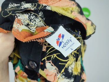 Koszula damska z krótkim rękawem – kwiatowy wzór - Krój: luźny, koszulowy, z kołnierzykiem i zapięciem na guziki z przodu - Rękaw: krótki, szeroki - Rozmiar: L (metka widoczna na zdjęciu) - Wzór/k...