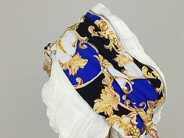 - Design: asymetryczny patchwork – lewa strona oraz mankiety w barokowy wzór (granat, czerń, złoto, biel), prawa strona gładka biała; naszyta kieszeń na piersi z lamówką w ten sam wzór.