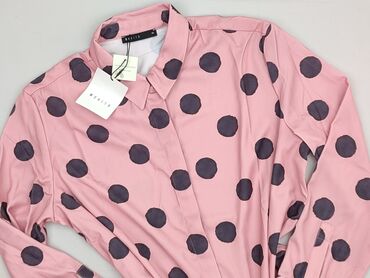Bluzka damska Mohito Collection w rozmiarze 38. Charakteryzuje się wzorem w drobne, geometryczne kształty w odcieniach białym, niebieskim i delikatnie różowym. Posiada klasyczny kołnierzyk i zapięc...