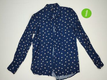 Koszula damska Moodo, rozmiar M - Kolor: granatowy - Materiał: 100% wiskoza (metka producenta) - Zapięcie: napy w kolorze starego złota na całej długości oraz przy mankietach - Kołnierzyk: klasycz...