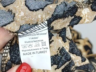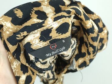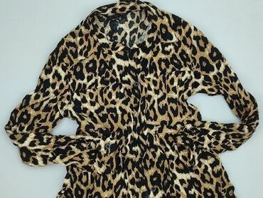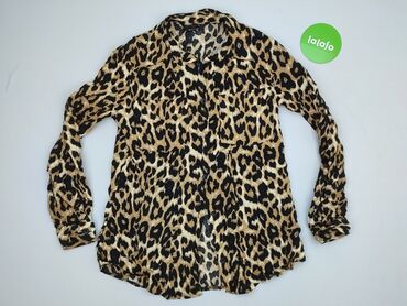 Bluzka damska w panterkę, rozmiar S - Fason: koszulowy, z kołnierzykiem - Zapięcie z przodu na guziki - Długie rękawy - Dół lekko marszczony gumką - Wzór: panterka w odcieniach beżu, brązu i czern...